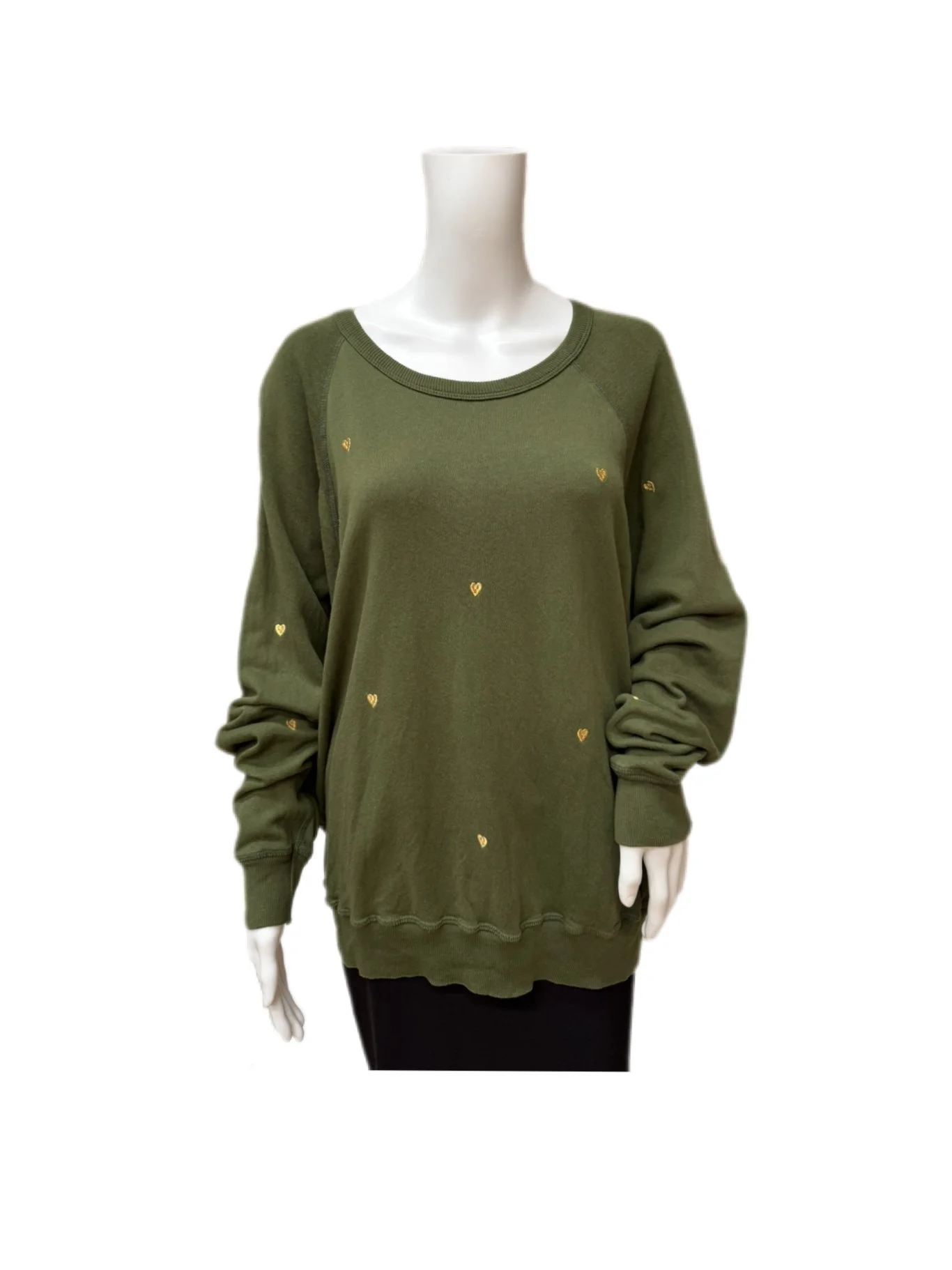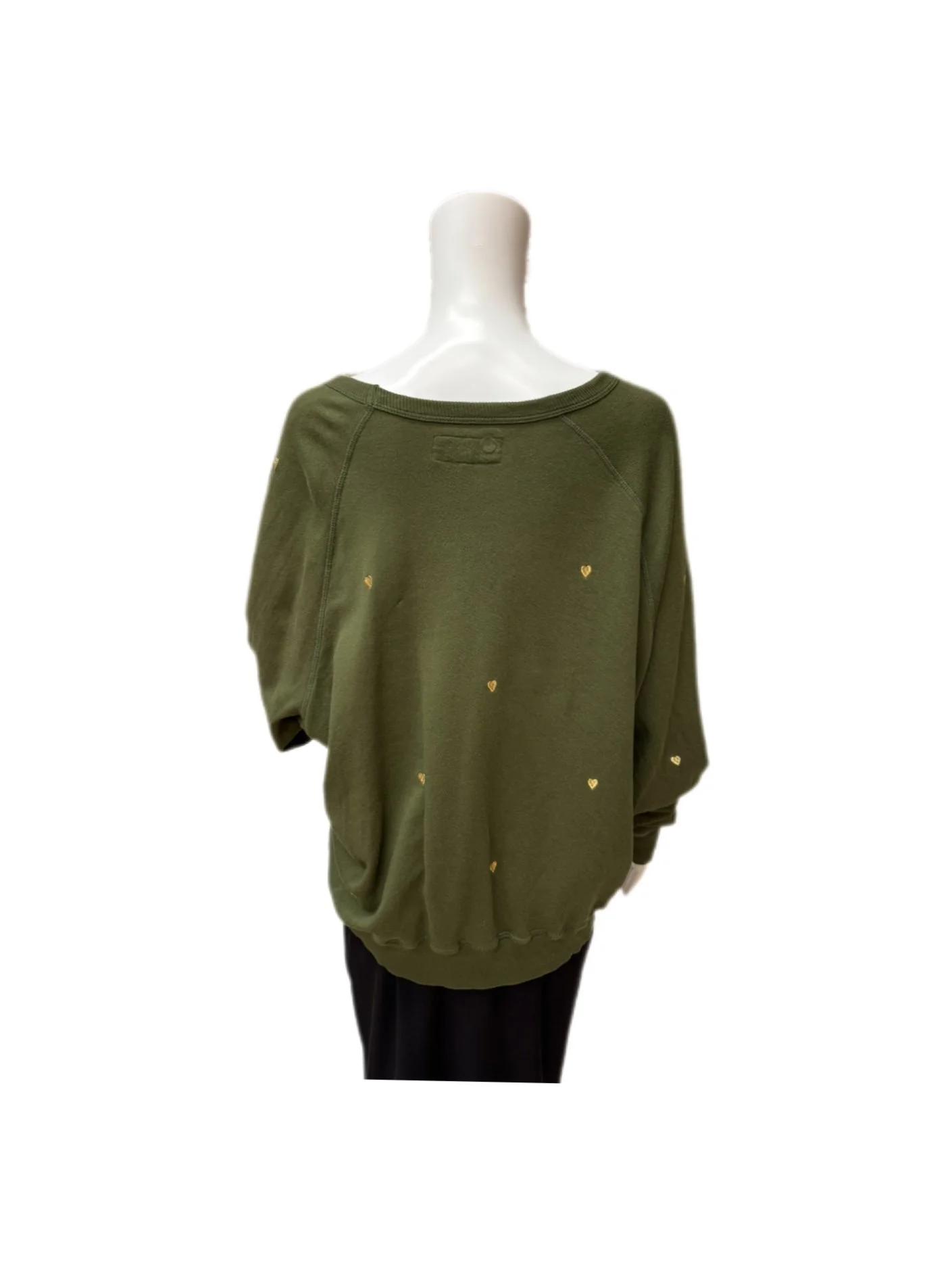 The Great cream The College sweatshirt with embroidered black hearts. Off the shoulder option. Signature cut at cuff. Fit is oversized. Retailed for $225.00. Excellent condition.